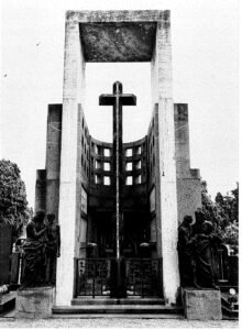 Quest’opera si distingue per il suo linguaggio razionalista e simbolico, in cui architettura e scultura dialogano in perfetta armonia per evocare il tema della croce e della resurrezione.